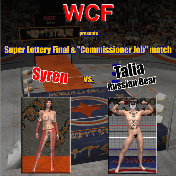 | It's the super lottery final and future of the WCF Commissioner's job rests on the outcome of the match. If Syren wins Lady Laetitia stays in charge, but if Talia wins then Cindy will become Commissioner and the league will enter a new dark age! |