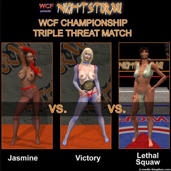 This evening the main event will be a Triple Threat Match for the WCF Championship and will also determine the final result of the Best of Five series between Lethal Squaw and Jasmine, who are currently tied 2-2!