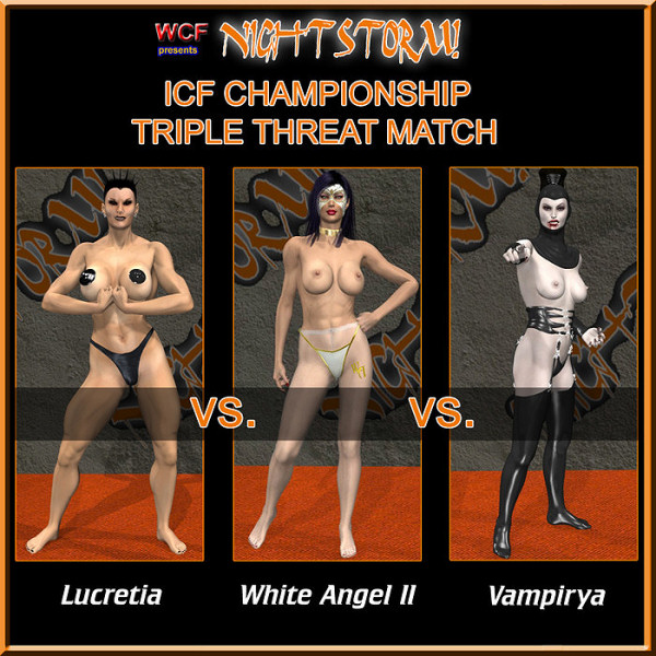 This evening the main event will be a Triple Threat Match for the WCF Championship and will also determine the final result of the Best of Five series between Lethal Squaw and Jasmine, who are currently tied 2-2!
