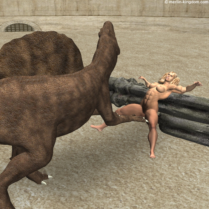 Aylee charges the beast, but it in turn thrusts out its massive head catching Aylee and knocking her back into one of the fallen columns. Aylee is only slightly shaken and in a heartbeat is back on her feet.
