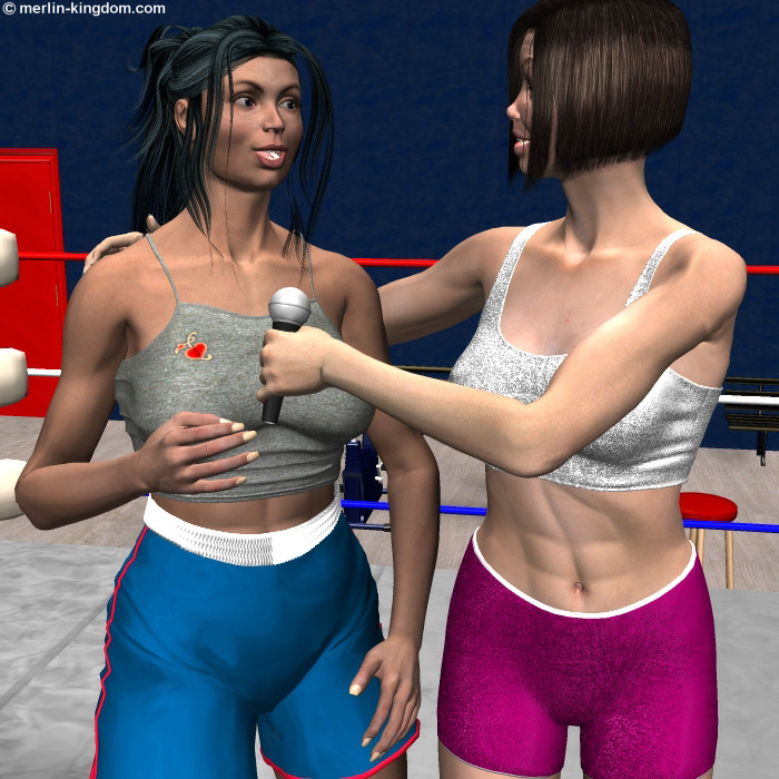 Jenny: What do you think of my opponent Mary Lou? Mary Lou: She looks pretty fit to me, but she is a bit smaller than you. It should be a good fight!