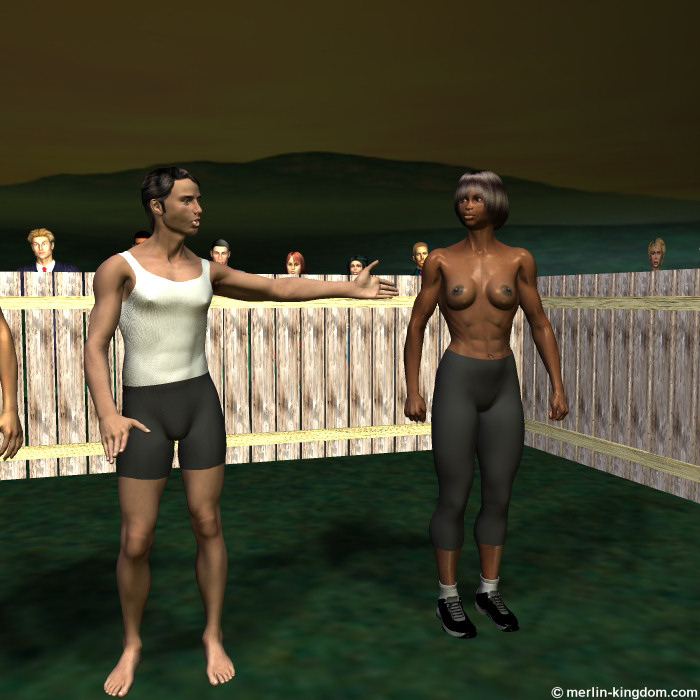 Richard now called Kate (aged 27, 5' 7", 135 lb) to the Stockade. She was wearing a pair of skin-tight training pants which weren't quite what Richard had hoped she would wear, but it was too late now to change that.