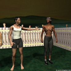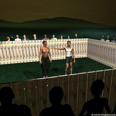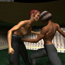 a reference of a midnight "anything goes" boxing match where the pugilists fought bare