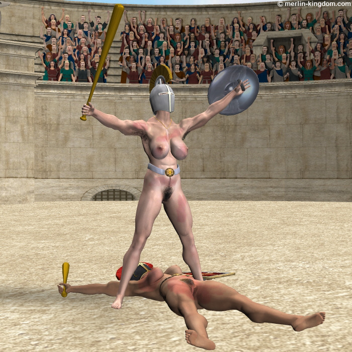 After a long and brutal battle the Gallic gladiator stood triumphantly over her unconscious Syrian opponent.