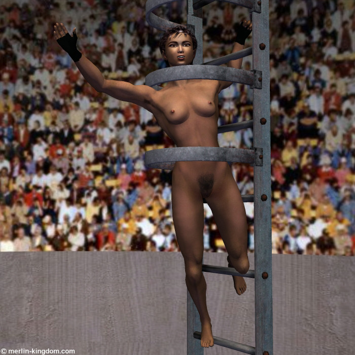 The crowd cheers in delight as Anna appears and climbs down to the pedestal.