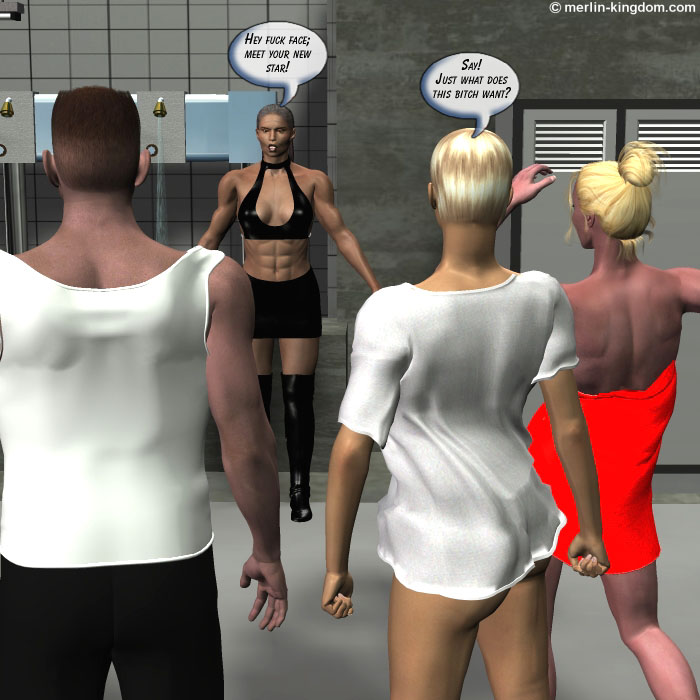 Suddenly the door is flung open revealing the tall, menacing, figure of Hammer, the champion kick boxer from Mexico! Just what does she want at The Pit? I think we all know the answer to that!