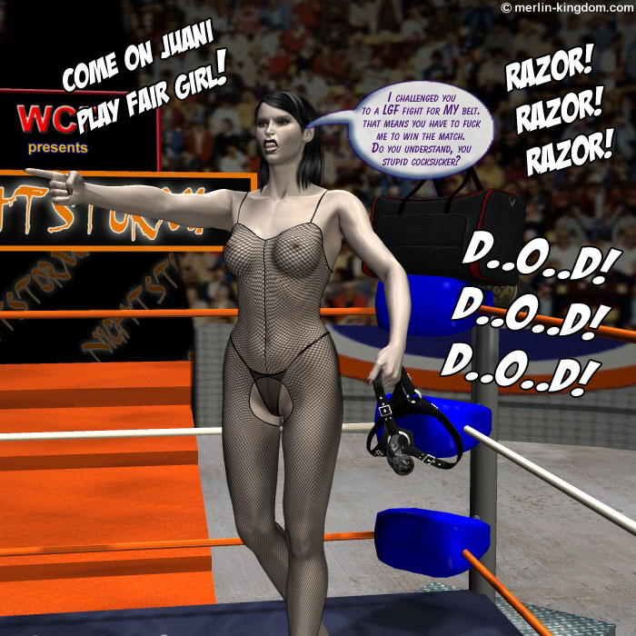 The crowd seem to be agreeing with Razor and are urging Juanita to accept the conditions of LGF....