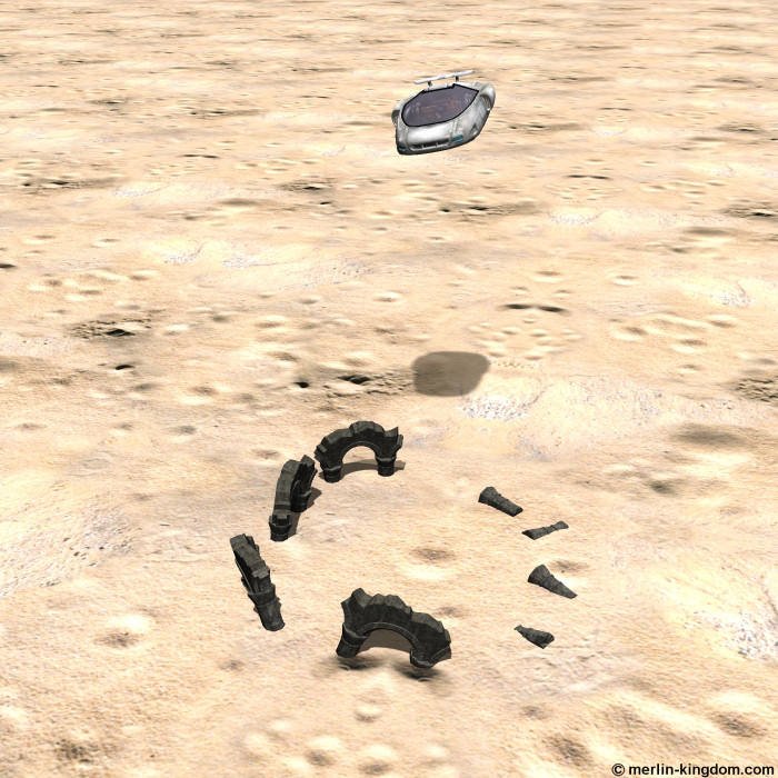 Several hours later a small sky-car materialised over the desert planet Xargan, many light years from Farah's home world.