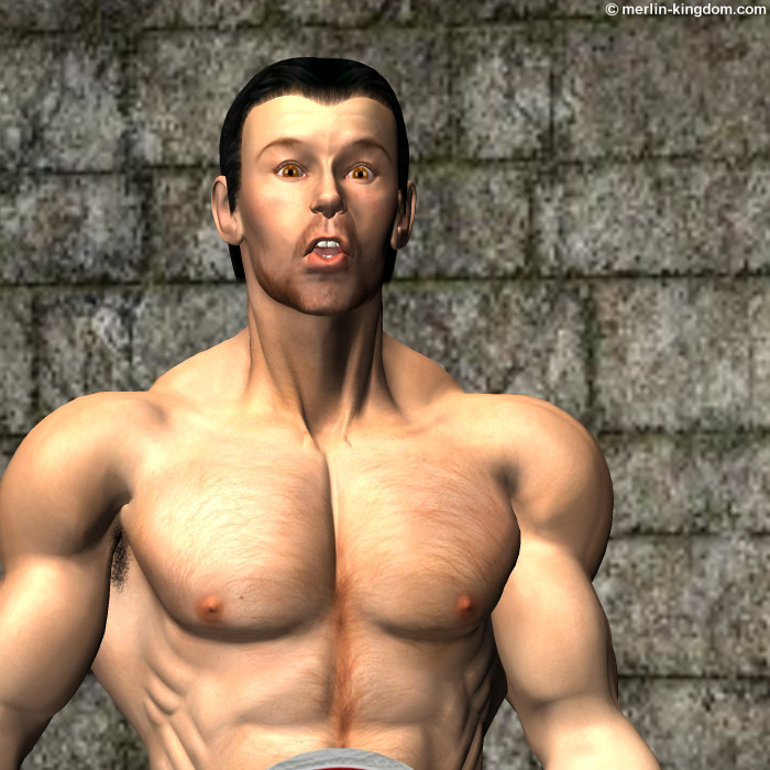 Machyste again is stunned as he views the naked muscle woman holding the great weight! His manhood is being challenged as never before. Myia drops the weight and Machyste throws off the belt and moves to it.
