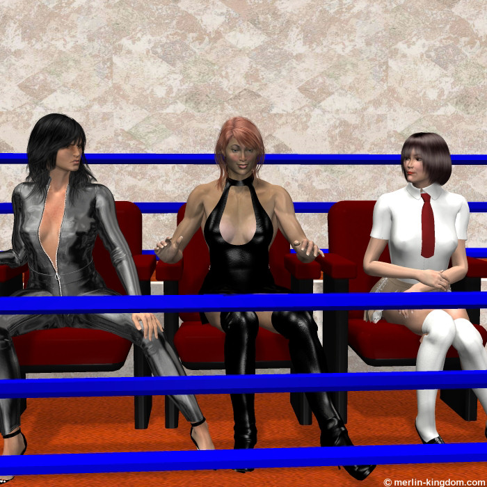 girls is still all too apparent. "Come on girls let's enjoy the fight and stop winding each other up!" says Jade as a roar goes up from the crowd to greet the challenger's entry into the arena. |