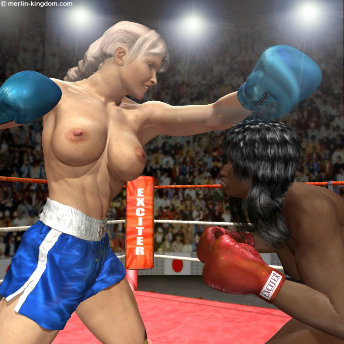 Marilyn goes for the first strike of the match, but Greta ducks below her swinging glove ...