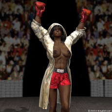 box of the arena to watch an International Topless Boxing Championship