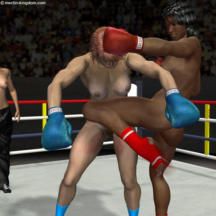 Greta held her rival by the head and then drove her left knee into Jade's guts with tremendous force.