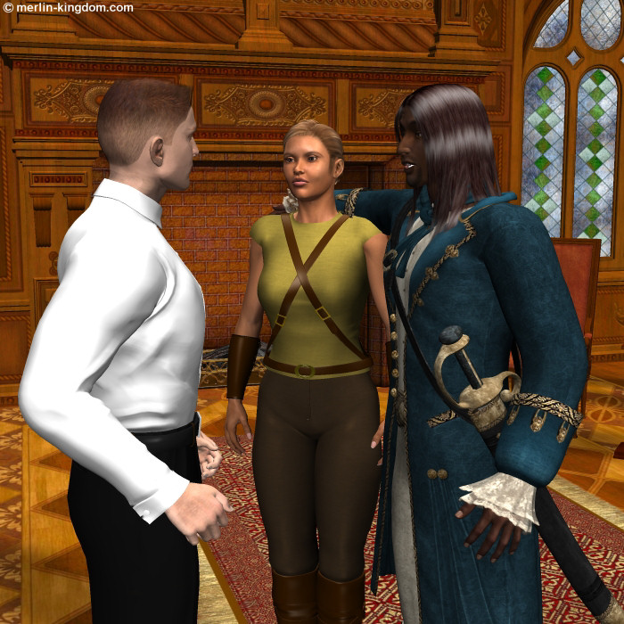 Fashionue and presents his 19 year old daughter Tania. "I am seeking a challenger to fight my daughter in a bare knuckle fight and I have heard that you arrange such fights in your stockade?" "I would be delighted to arrange a fight for you Tania. I have several slave women that would be only too pleased to give you a match!" "No that is not what we want!" interrupts the Captain. "Tania will not fight a slave, she is a free woman and she will only fight a free woman, preferably a white planter or somebody of rank. She is a Captain's daughter! I will sweeten the contest by wagering 10 gold ducats on my daughter winning. "Good heavens - 10 gold ducats!" exclaims Sir Richard in astonishment, "I think I will definitely be able to find you an opponent with that sort of prize on the table!" |