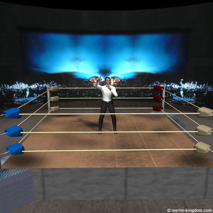 Ref is in the ring now, playing announcer as he usually does, as he introduces the event to the noisy and mostly rowdy and drunk crowd, who look to be members of a large gang!