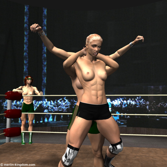 Lisa wins the initial encounter, trapping Jen in a full nelson ...