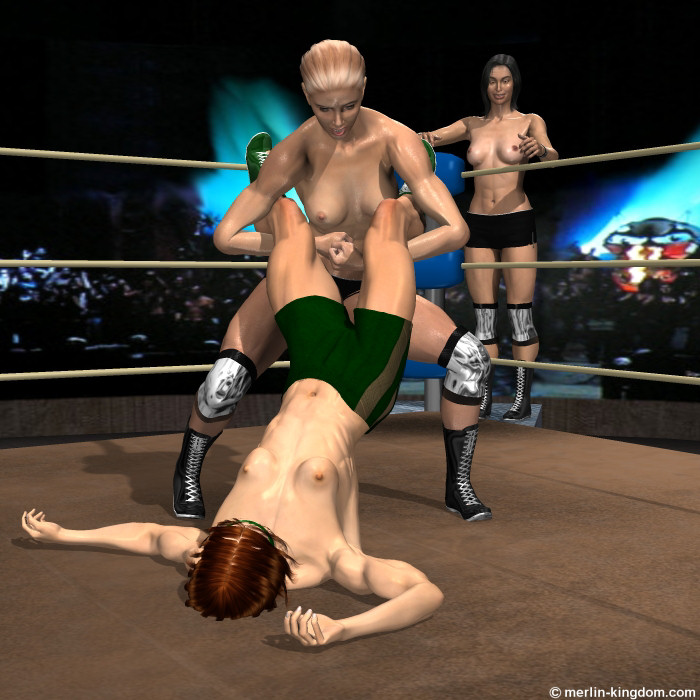 Jen leaps to her feet and grabs a hold of Amanda’s legs, preparing to apply a boston crab on the prone Amanda.