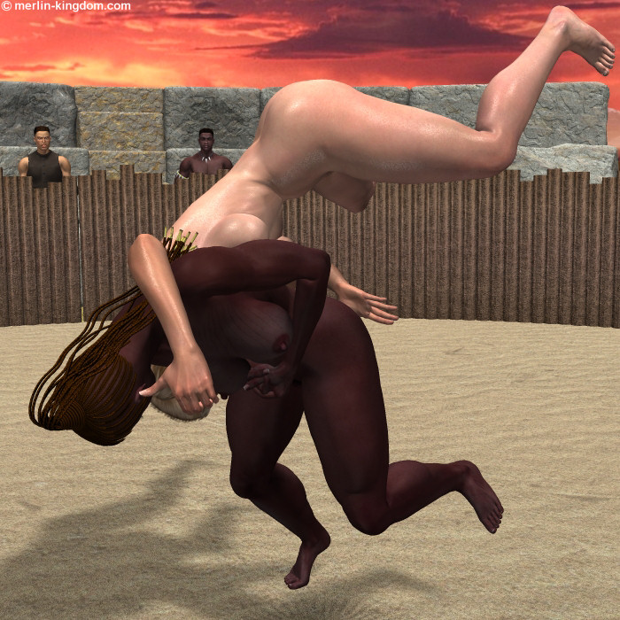 Maggie let out a loud belch and tried to back away, but before she could retreat Na'koga grabbed her in a headlock and tossed her over her shoulder.