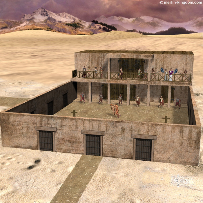 | Owned by Maximus Cornelius, a wealthy Roman, the ludus exists as a port for exhibiting the captured amazons, barbarians and female soldiers taken by the Roman army in its endless quest for power. The fighters are brought here to compete with each other and, as on this day, to show interested buyers the ability of the gladiators as they face off against each other. |