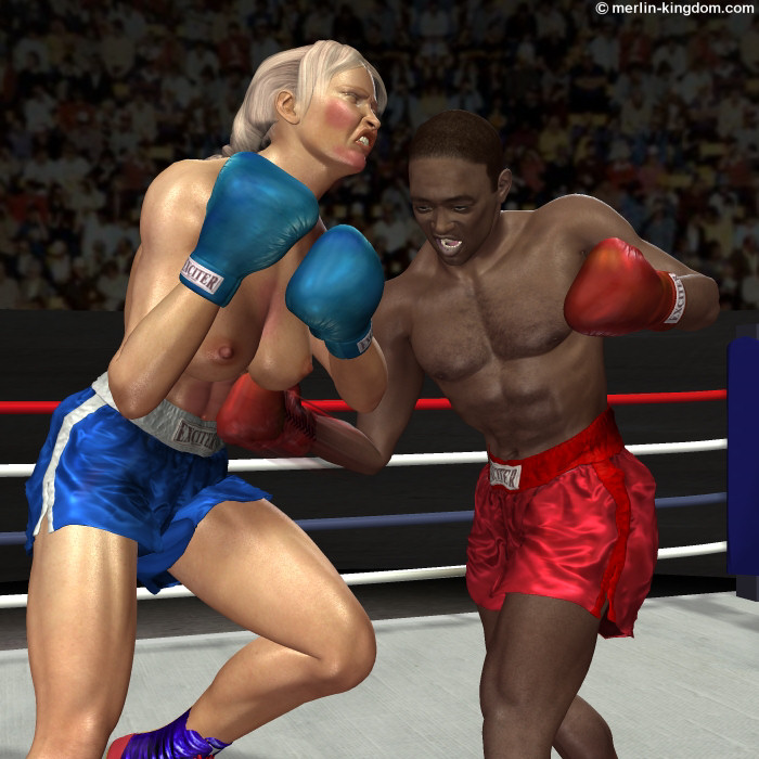 The French fighter follows on with a deep, powerful punch to the blonde bomber's ribs! Oh... that's hurt her!