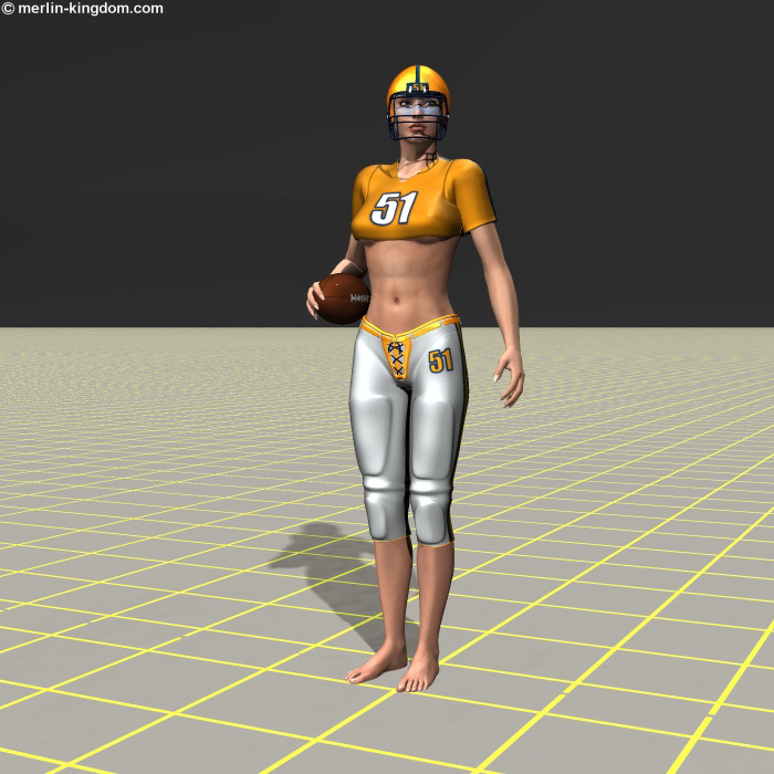 Suddenly Cindy is standing on the base Holodeck - a flat plane which appears to stretch to infinity. She looks down at herself to discover she is now wearing football gear and carry a ball.