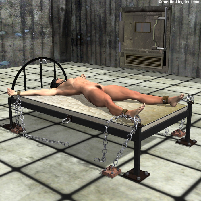 While Jade is searching for her friend and lover, Christine she is lying chained to a bed in a dingy basement prison complex. She was taken here by the black power wrestler Zimbali after being defeated by her in the fight in Bare Assed Fighting League fight in Kyoto. |