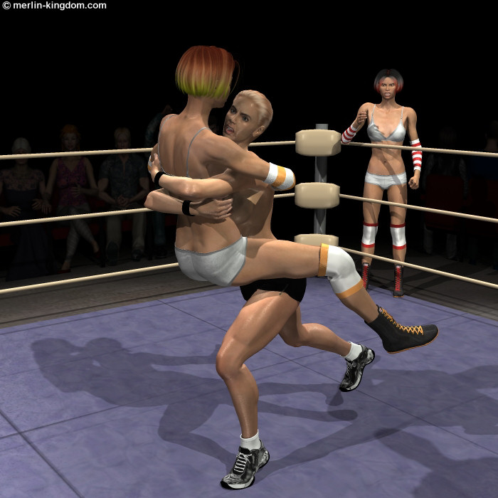 Jen lifts Tonya up and begins to push her backwards…